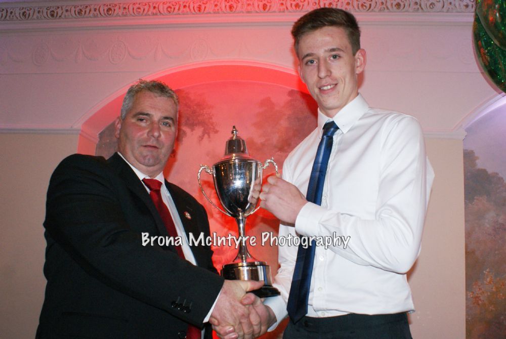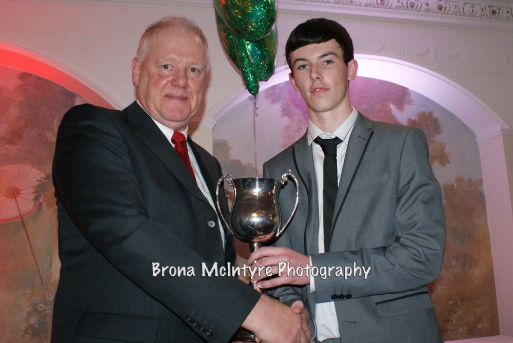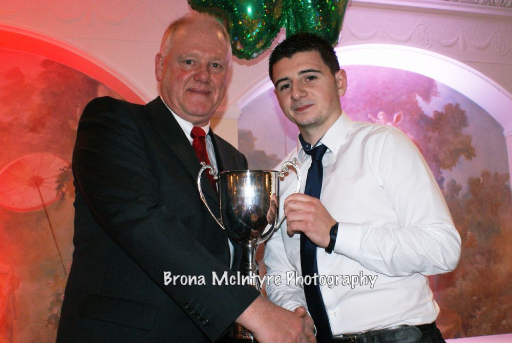 Minor Player of the Year Adrian Anderson receives his award from Club President Jamsie McAtamney